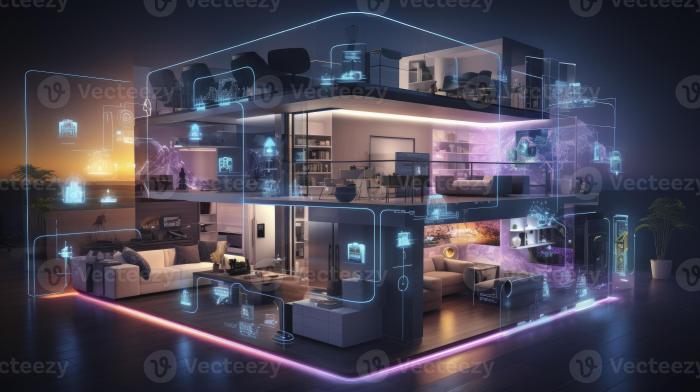 This interconnected network allows devices such as thermostats, lights, security cameras, and appliances to communicate with each other and be controlled remotely through a smartphone or voice commands.